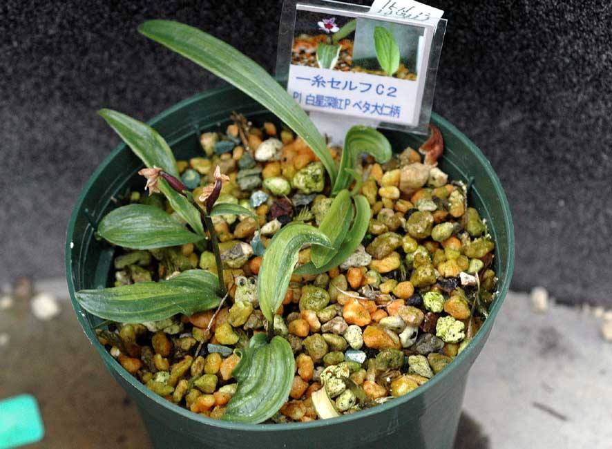 狙い交配・(一糸セルフD1×一糸)縞柄です来年の芽出しと花芽が楽しみ