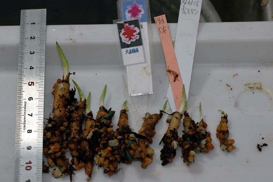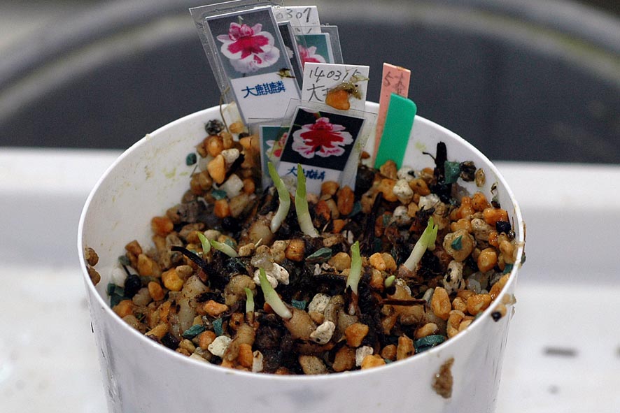 ウラシマの場合、袴の色からだいたいの花色の想像ができるようになってきました。現在は産地の違う花の交配の互換性を検証中です。