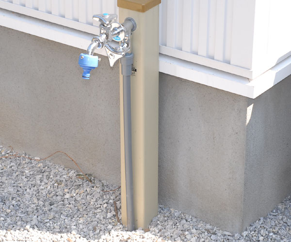 今までは外水道から蘭舎までホースで水を引っ張っていましたが、蘭舎をミスト仕様にするのにホースの取り回しが厄介になってきました。…よっこらしょ、重い腰を上げて配管工事をしました。こういうDIY的な仕事は得意分野です。