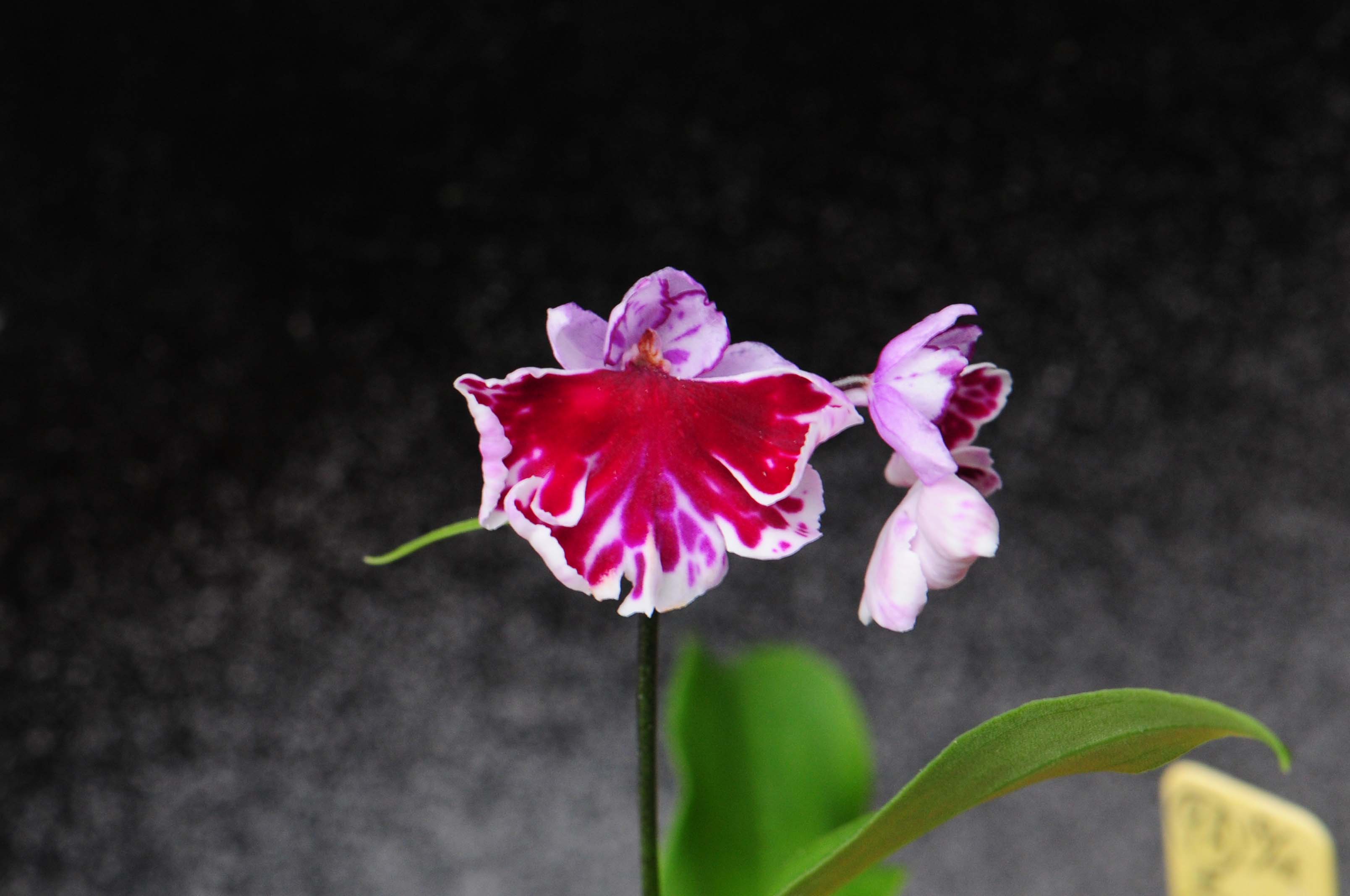 この交配は5本開花しましたが、完全な一点系が2本、写真のような斑紋とも一点ともいえないような花が2本、完全な斑紋系が1本という結果でした。写真のようなタイプはもう一本の方が良かったのですが、写真を探せず…