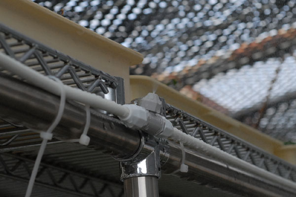 こういうときは簡易ミストの出番です。1日6回自動散水でミスト噴霧。2~3℃は下がります。