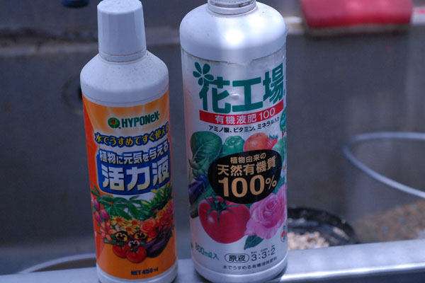 活力液も肥料に混ぜてますが、その効果はよくわかりません。気休めかも。