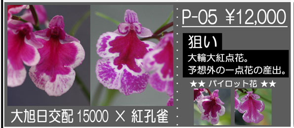 両親の系統がまったく違うので、もしかすると駄花が多くなるかもしれません。(駄花といってもある程度のレベルの花でしょうけど・・・最近は贅沢になってイカン) 駄花が多い交配は意外と飛び抜けた良花が咲くことも多いのでこれからの交配の軸になる花を産出させたい交配です。