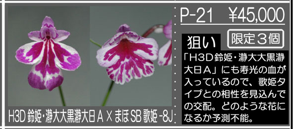 かなり玄人好みの交配かと思っていましたが、マニアの方から一般の方までいろいろとお買い上げいただきました。ありがとうございました。