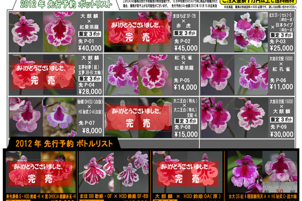 先行リストですが、ぼちぼちと完売が増えてきました。大麒麟系と鈴姫系がえらい人気です。