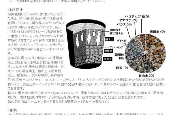 栽培方法によって水の量や土の配合などは変わってくるとは思いますので、すべてを鵜呑みにせず、なるほどと思うところだけでも取り入れていただけると幸いです。