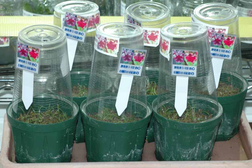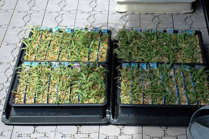 同類の予備交配が無いためゴマ粒大の球根を水洗い処理して植えつけ