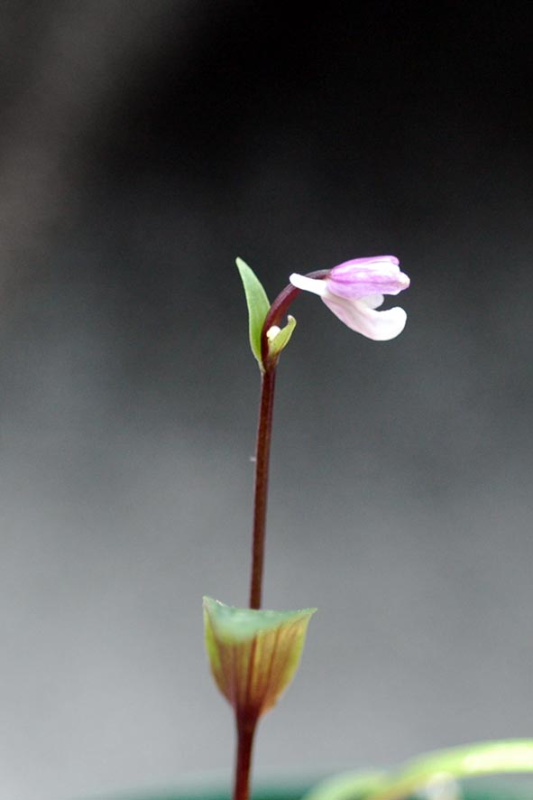 ちょっと顔をのぞかせました、距は伸びてウチョウ蘭ぽい紅点は並程度