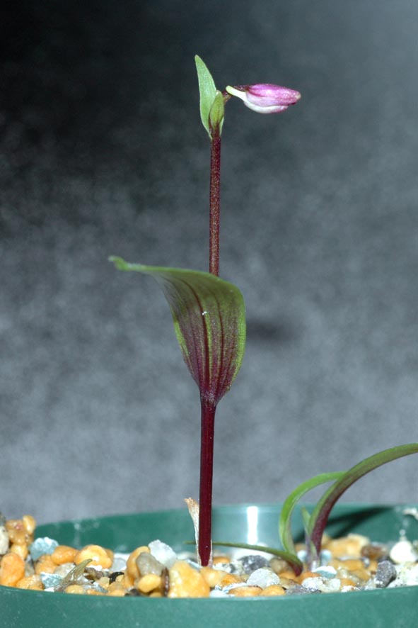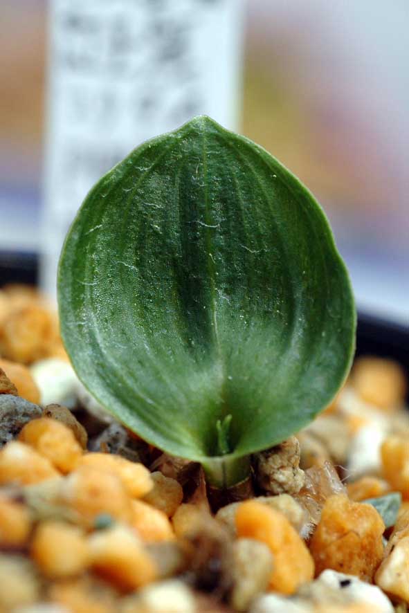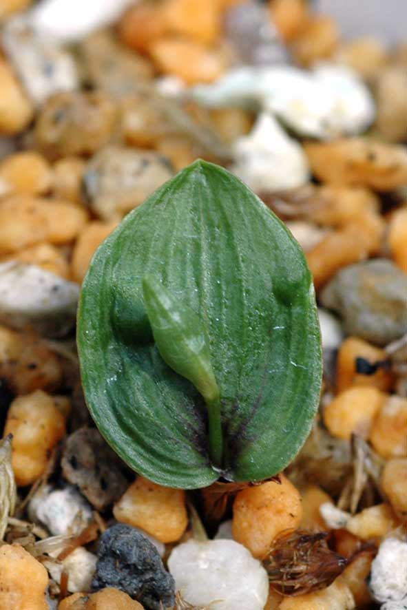 麗日遊兎P1ベタ(イワチ)×紫一点仁王連舌(ウチョウ蘭)球根はウチョウラン型