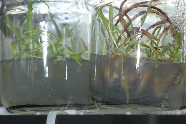 この写真は通常ビンとの比較です。この交配は成長があまり良くなく、ほとんど今年はビンから出せず、植え継ぎしました。なのにこのビンだけはこの成長っぷり。鬼面児さんからホルモンでは?とのご指摘。