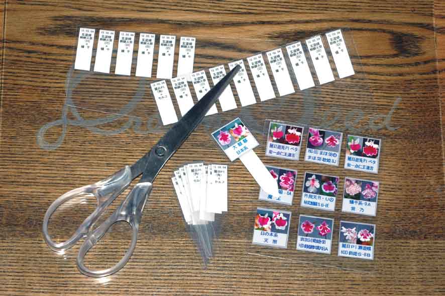 今年瓶出しの写真ラベルと交配ラベルラミネートで作成