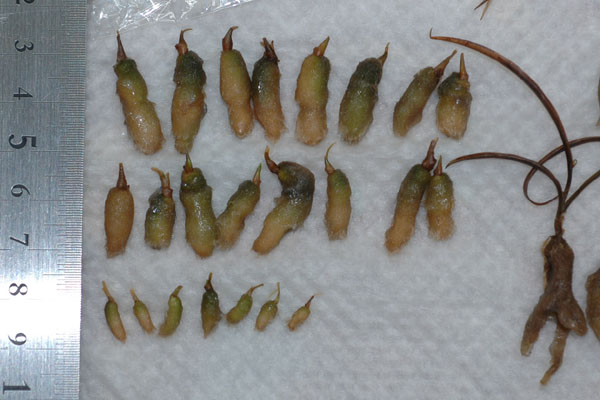 右にかすかに写っているのは枯れた根ですが、極端に太く、枝分かれしているのが分かると思います。普通は根が2本まっすぐに伸びるだけなんですけどね・・・