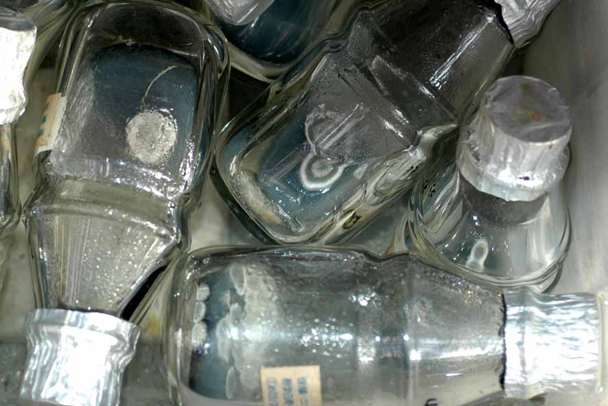 ホンの一部3階の瓶に雨水が入りました、カビも入りました