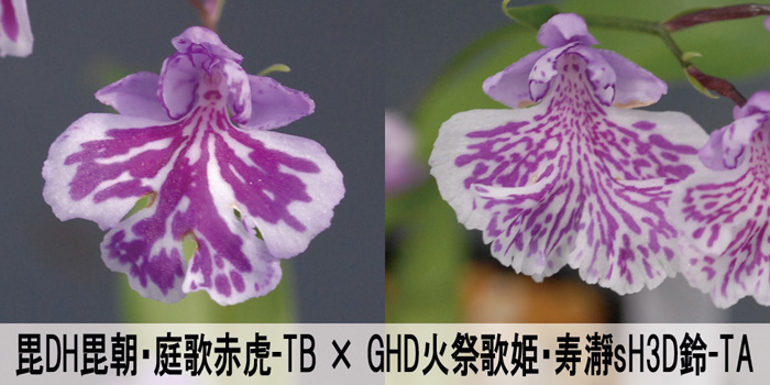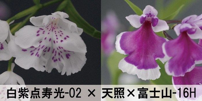 いい白紫点花がないので、やってみた交配です。1/2は白紫点になる計算です。