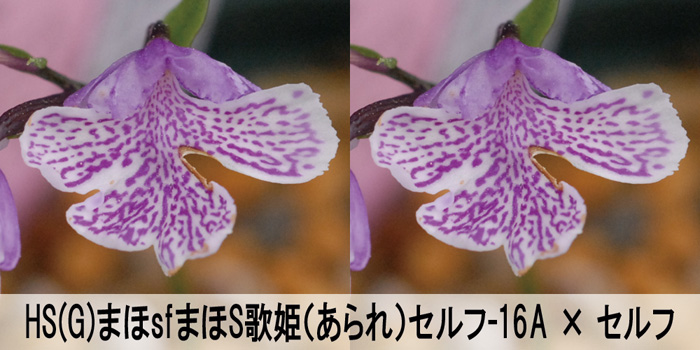 斑紋花のセルフですが、斑紋花も紅斑紋も出るでしょう。系統上、ちょっと花弁の弱さも心配ですが、それをマイナスしたとしても十分魅力的な交配だと思います。