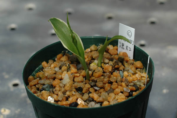 去年、花で選別した個体に今年、覆輪の斑が入りました。イッツ ア ミラクル。