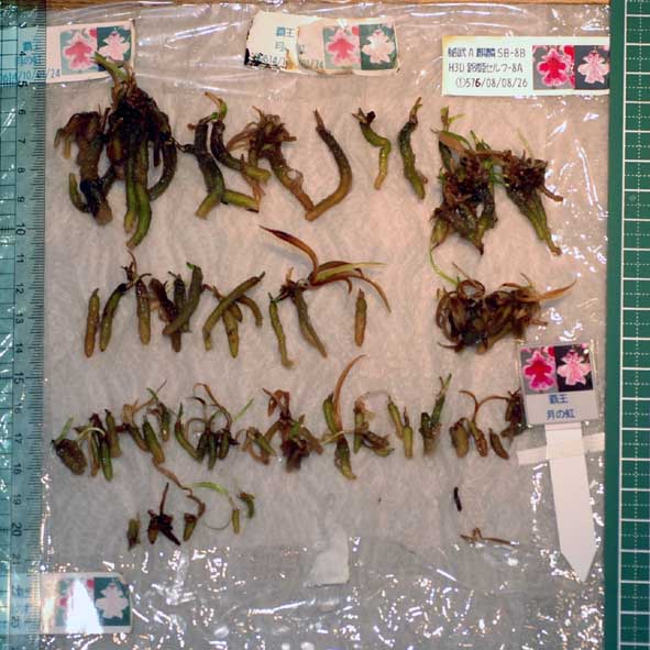 これもどちらかと言うと難発芽気味、両方とも同じ吾亦紅×瀞仁王獅子
