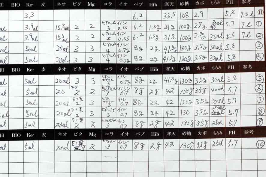 ビン移植集中、今日も朝から培地造り1回で9000ml~位ですので