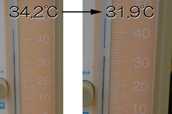 でも、すぐに水は乾いて気温は逆戻り。毎日1時間おきぐらいやらないと意味はありません。