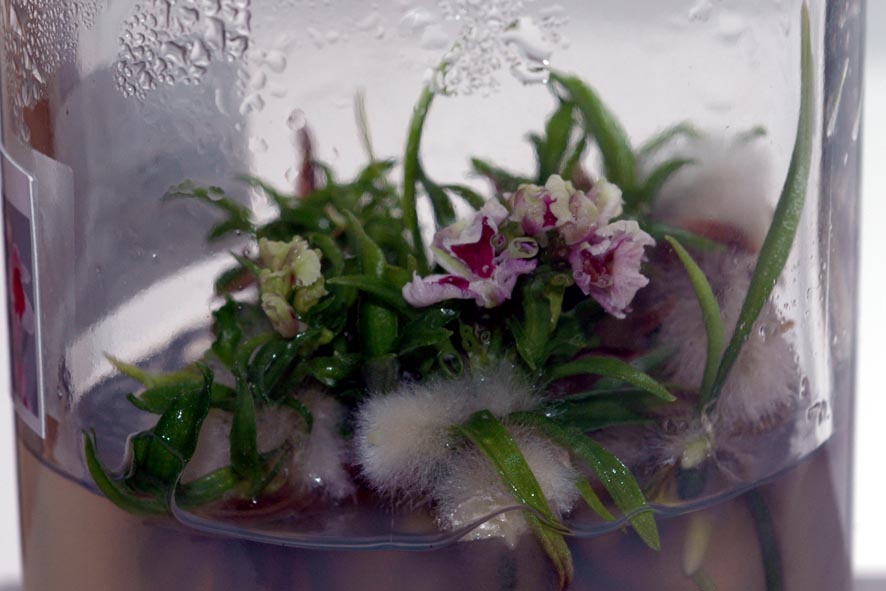 ルーペで覗くと蝶と獅子咲の混合です、瓶だけの青春に