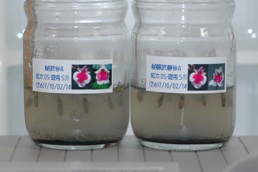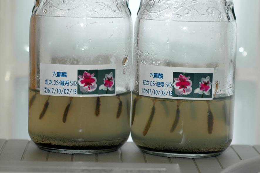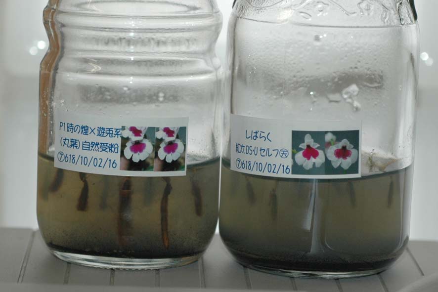 大輪の純白一点を作る為の戻しの交配です、もう一度
