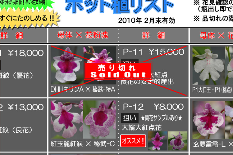 近頃、リストの品切れ速報だけだったので、08年の奇花を更新してみました。