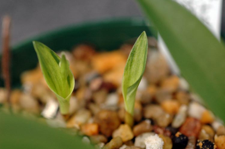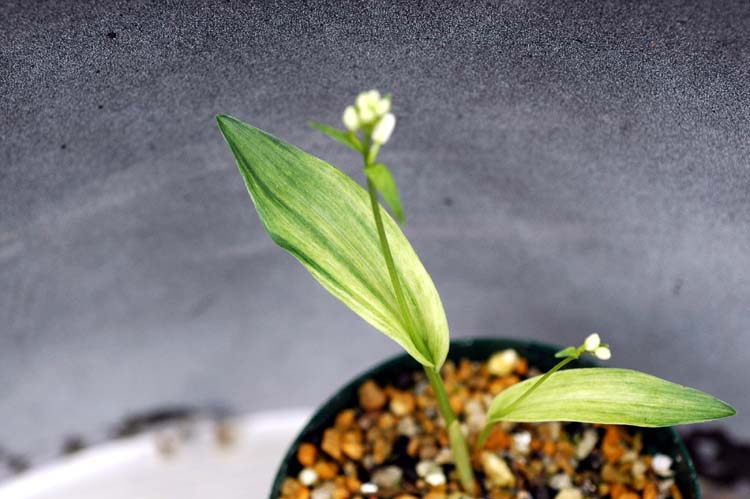 昨年オークションで手に入れた白花の散斑柄・葉の展開です