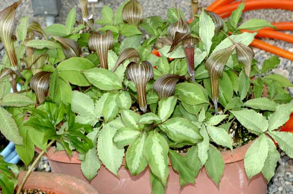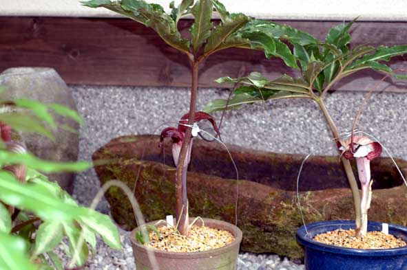 昨年採集の葉変わりのテンナンショウ昨年は小さな
