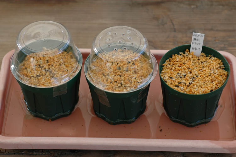 ダンボールのどういった効果で発芽を助けるかは不明です(蘭菌の繁殖を助けるという説が有力のようですが)。まぁ、発芽はするので詳しい理由はいいとするか。