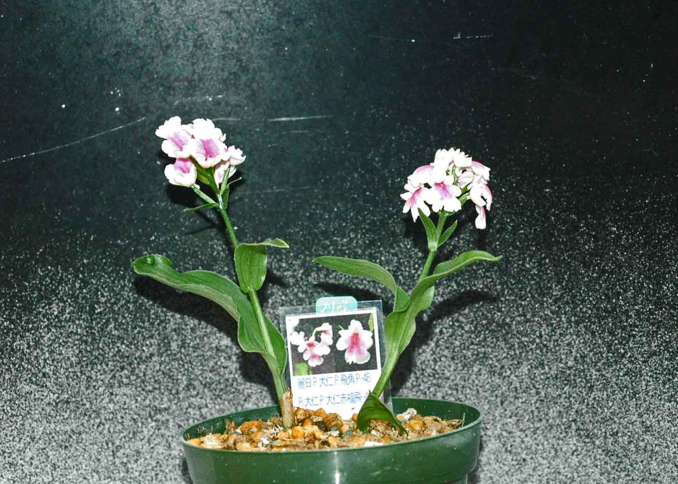 アルペンガーデンやまくささんに譲っていただいたチャボシランです。写真だとよくわからないと思いますが、実物の地色は黄色みがかったきれいな色をしています。