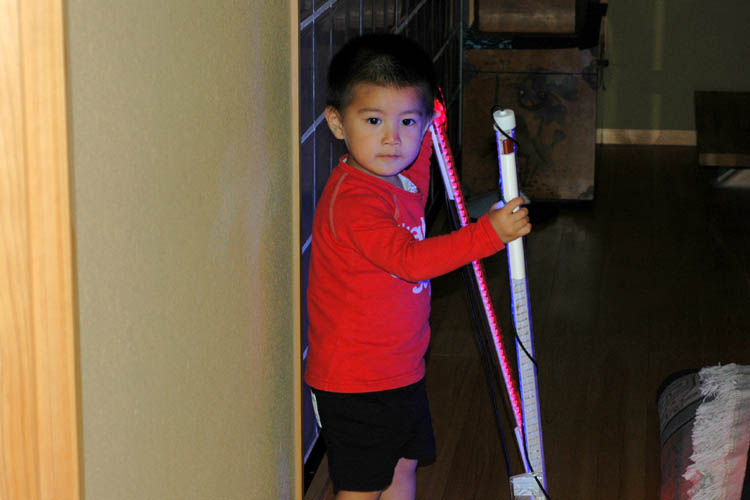 2歳8ヶ月、試験用のLEDライトがお気に入りで勝手にコンセントに