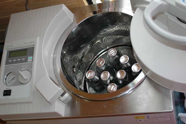 少し遅れ気味ですが培地作りの始まり、1度に8000ml(110~120瓶)