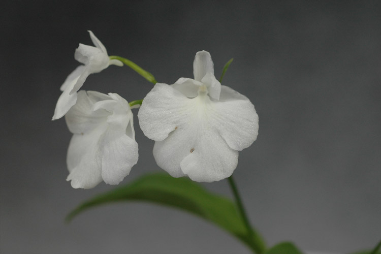 無名品ですが、大仁王系白花で特に丸く大輪、ほとんど反らない花です。花の幅は2cm。