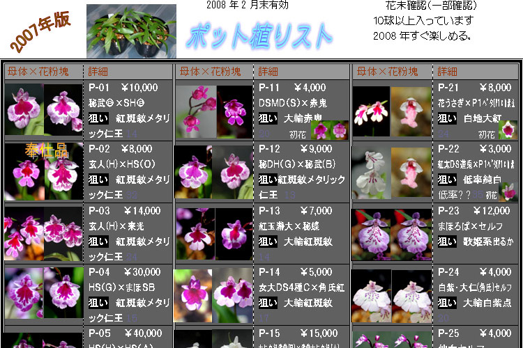 HPに同じリストを掲載していますので、HPを見てのご注文も承ります。