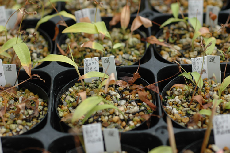 1鞘の種から数本しか発芽しない3倍体の交配なのでこうなるのはわかっていますが、半分遊びでやっています。1本も発芽しないこともしばしばです。