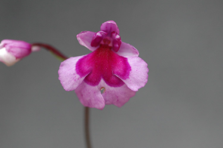 去年(06年)に咲いた奇花です。分かりにくいですが、花粉塊(オシベ)が通常2個のところ、3個付いています。07年は花が付かなかったので、なんとも言えませんが、固定はしないでしょう。