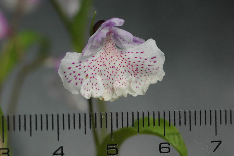 花の幅約2cm 超大輪で全面に細かな点を散らす斑紋花の新花です。