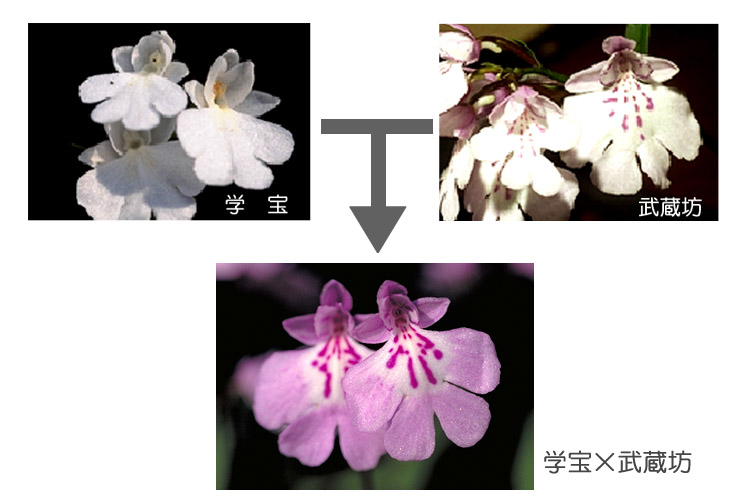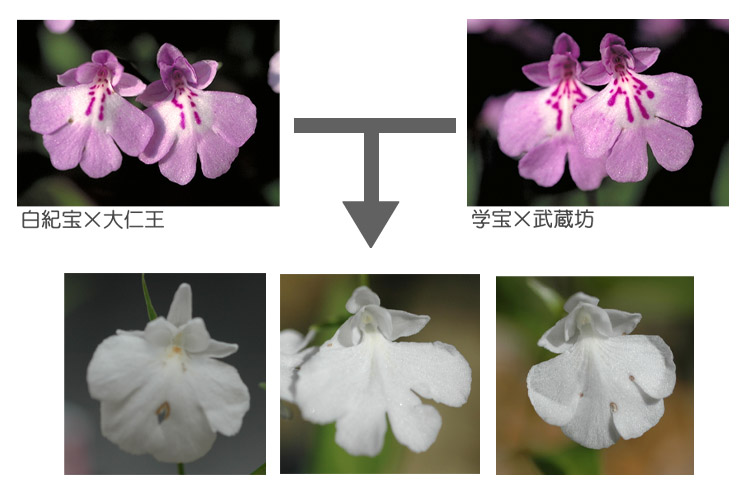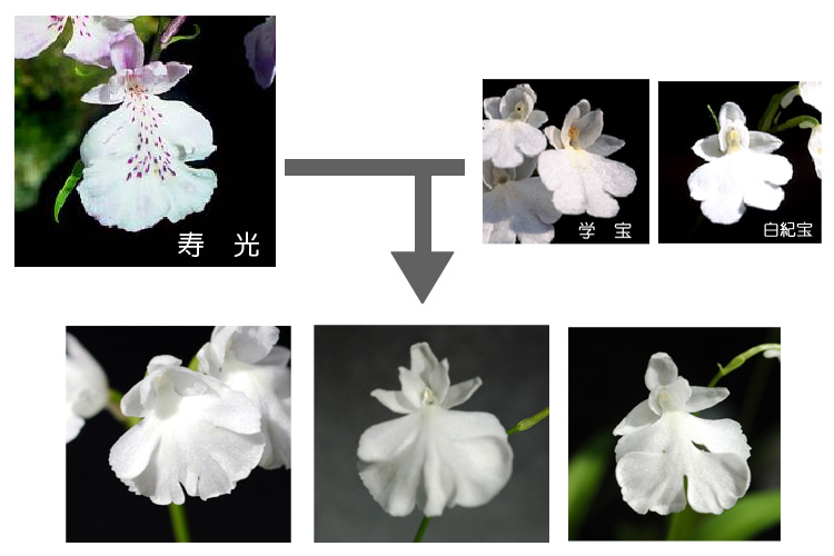 「白紀宝×大仁王」と「学宝×武蔵坊」を交配するとやっと大仁王系白花ができます。