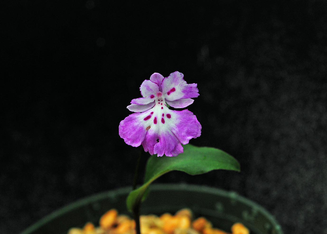 ウチョウラン紫一獅子(母体)×イワチドリ酔白(純白の血あり)(花粉)の球根がようやく大きくなったのでビンから出してみました。