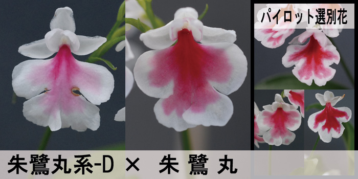 めちゃ濃いピンクが出そうな交配です。朱鷺丸系-Dは朱鷺丸と兄弟関係にある花で、当時ピンクでも濃い部類に入る花でした。(朱鷺丸にはかないませんが…)