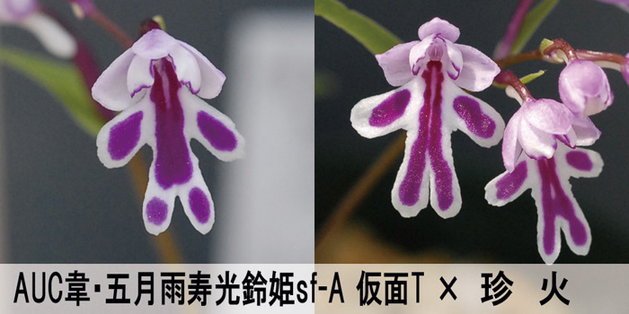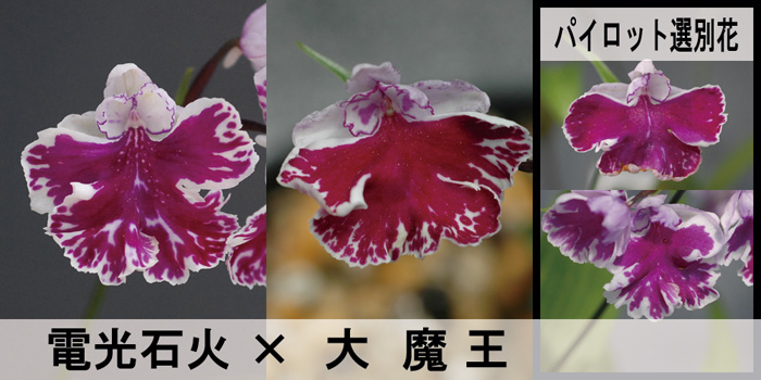 両親とも仮面騎士系の花なので、けっこう仮面騎士タイプが取れそうな感じです。欲をいえば小輪ではなく中輪タイプの仮面騎士系「木霊(こだま)」のような花がいくつか出てほしいところです。中輪タイプの方が目立ち、展示会向きな花なのでけっこう人気がありますよ。仮面騎士タイプの一番いいものと「木霊」を並べるとだいたいの人は高くても「木霊」を買っていかれます。