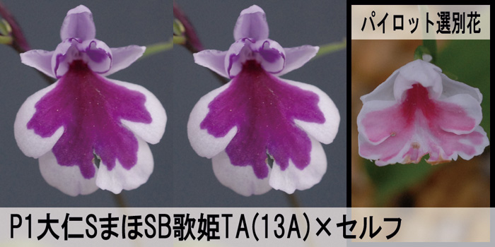 歌姫ピンクを狙った交配です。瓶出し即のパイロット花のF1をセルフしてちゃんと狙いの花が出るかの検証をしたものですが、ちゃんと狙いの花が出ました( ´∀`)bグッ! 瓶出し即のパイロットの歌姫ピンクですが、ちゃんと歌姫芸をしているので、大丈夫でしょう。