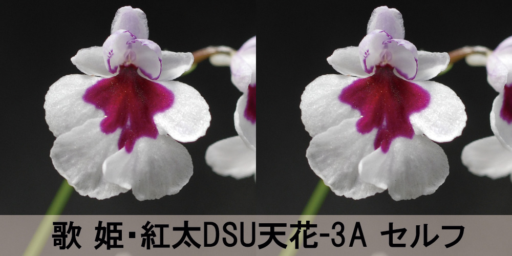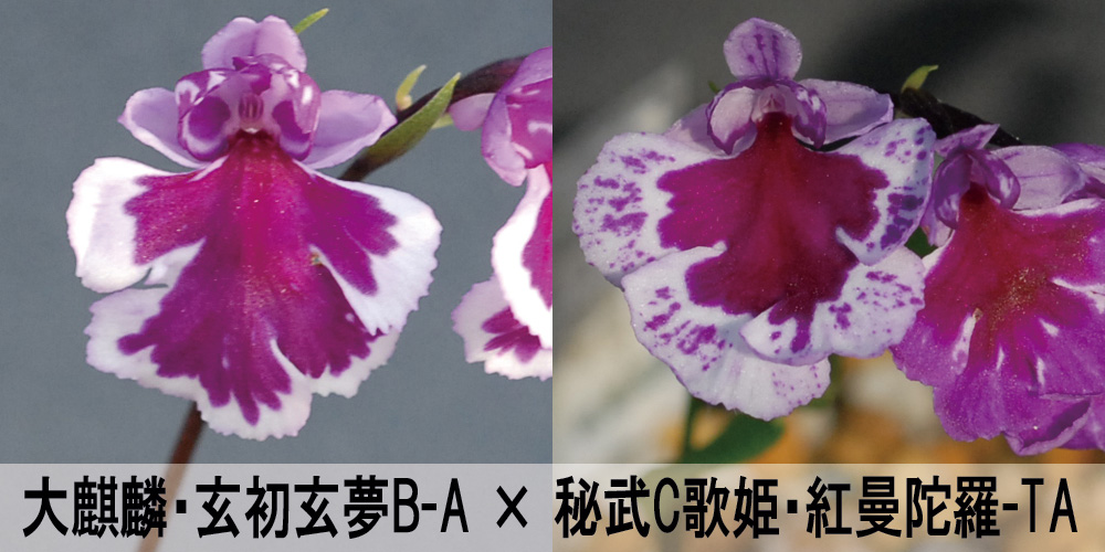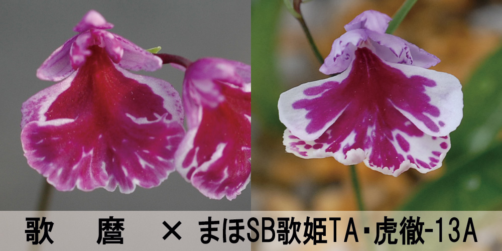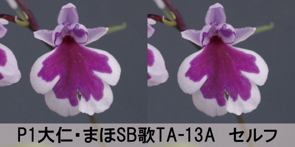 斑紋一点の特徴は「まほSB歌姫TA・虎徹-13A」にも少し出てるような?出てないような?感じです。隔世遺伝が基本ですから今回の交配で虎徹芸が出るか?というところでしょうか。うまく芸が出れば、歌姫タイプの虎徹に。芸が出なくても歌麿系やば普通の歌姫タイプが咲くでしょう。