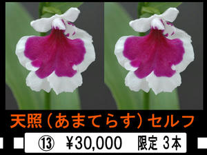 「天照」の交配内容は「紅太DS・遊兎×P1・遊兎」でピンク一点の血が入っているからです。「天照」とピンク一点花を交配したものは今年ビン出しで一部ピンクが咲きました。だから「天照」をセルフするとピンクも出るんじゃないかと・・・まぁ、実際咲いていないので確証はありませんが、大輪純白一点と大輪ピンク一点の両方が狙えるお得な交配でもあります。
