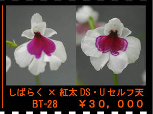 両親とも大輪の純白一点花の交配です。大輪といっても現在の大輪の基準からは中輪ぐらいになってしまうかも。両親とも大紅点の血が入ってますので、大輪純白大紅点も咲くかなぁと。