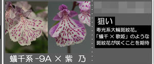まあ、「紫乃」も「歌姫」も血統的には似ているので「蟻千×歌姫」のような花になるんではないかと推測されます。