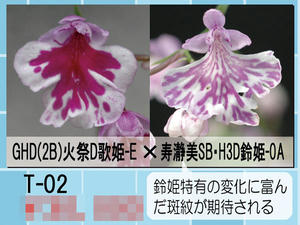 この交配もH3D鈴姫系です。花粉親は何とも言えない紅斑紋が魅力の花で、子供にどういった花が咲くか結果は予想できません。