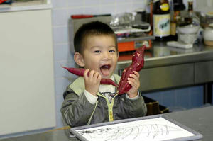 ホワイトボードに芋を書き始めましたがすぐに芋と遊び始めました。