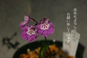 元旦の花はウチョウランの紅斑紋のような斑紋。今日の花も面白い今後同じような交配でいろいろなパターンの花が出てくるのでしょう。