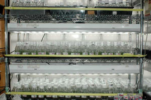 5段の棚のフレーム3本(計15棚)今年の瓶も球根が充実しています